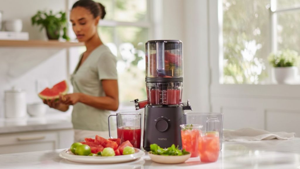 The Nama J2 Cold Press Juicer is one of the most popular and innovative slow juicers on the market. It stands out for its self-feeding design, which means you can load the top hopper with whole fruits and vegetables, press start, and let it juice automatically — no constant pushing or cutting required.